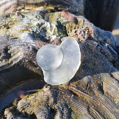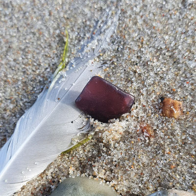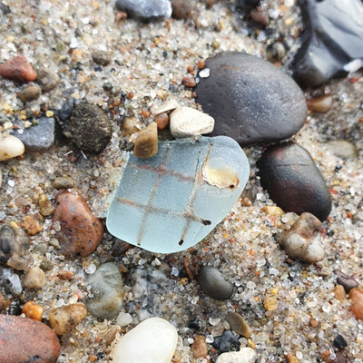 Auf Märkten werde ich oft gefragt, woher mein Strandgut kommt oder ob ich das Meerglas nachbearbeite. Bei meinen Bildern ist es mir wichtig, dass diese "Originale" von der Ostsee sind. Ich sammle alles an den heimischen Küsten und verwende das Strandgut so, wie ich es gefunden habe. Meine Meerglas Vögel sind also echte kleine Ostsee Vögel, jedes Keramik Segel stammt vom Ostsee Strand. Ganz besondere Funde wandern jedoch in mein persönliches Strandgut Schatzkästchen, wie eine Murmel oder ein seltenes lilafarbenes Stück Meerglas.